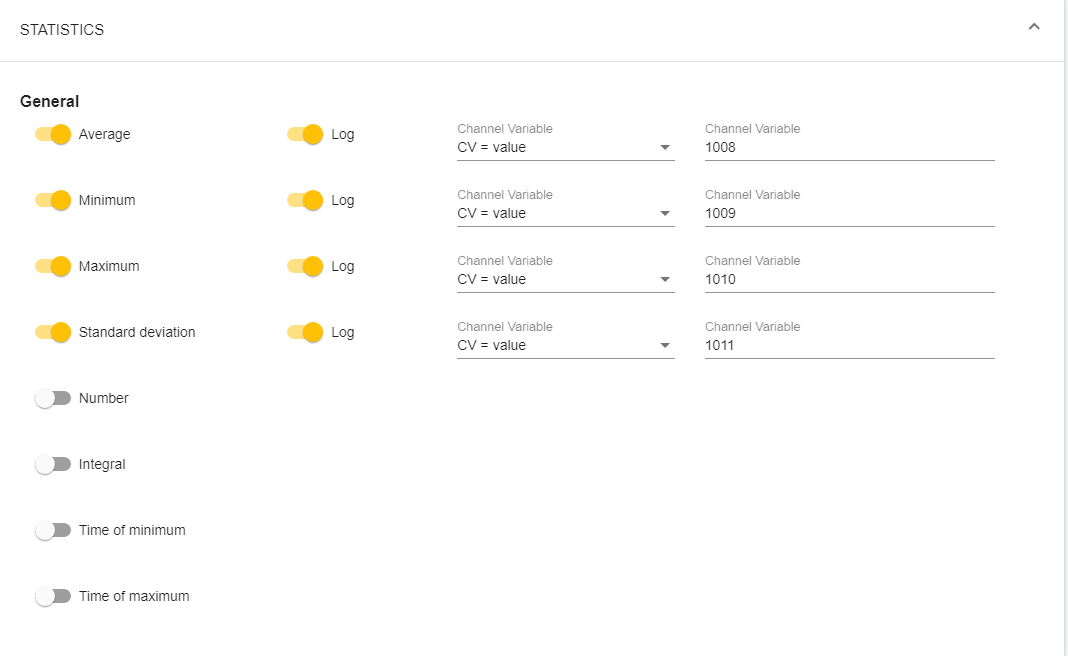 Hello, I am trying to set a statistical routine that measures every 5s. Then I have an routine for the 1 minaverage values of the 5s measurements. Applying statistics: ![6245dc70b16ba](serve/attachment&path=6245dc70b16ba) values registered: ![6245dc9f2a12f](serve/attachment&path=6245dc9f2a12f) My issue here is that the values being registered do not match the ones I want to have. It is also saving the instantaneous 1 min value of the variable. Is there a way not to save this instantaneous value? The objective is to later save the 1min avg schedule and send it in a CSV file to a datacenter, with only the statistics I've requested: without the instantaneous 1 min value which has no interest to me. Thank you!