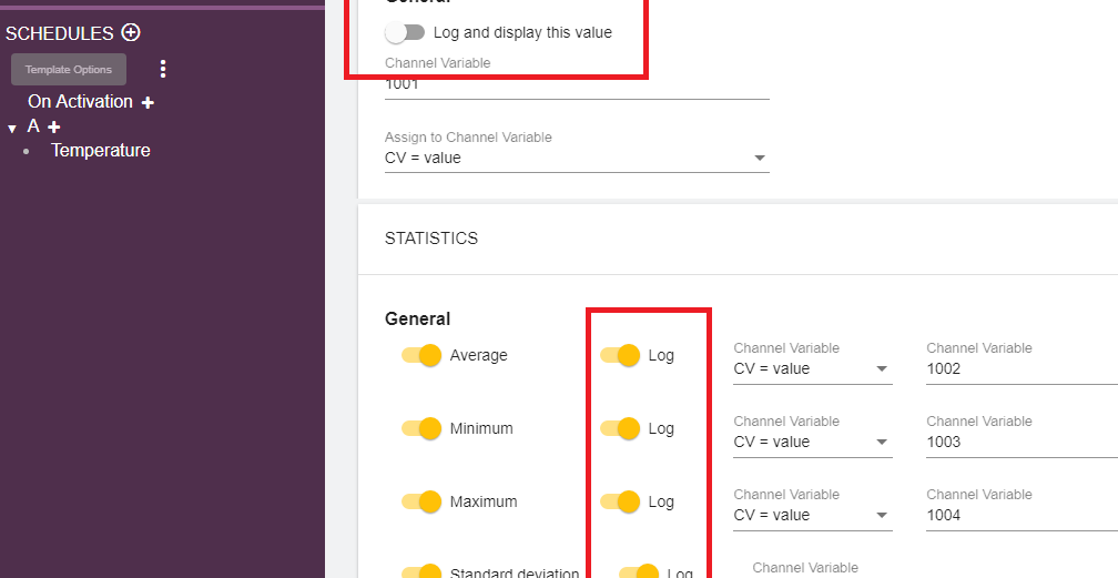 Hi acavaco, You can disable logging the instantaneous value. ![625e9bb63daed](serve/attachment&path=625e9bb63daed) May I know why you said the value is not what you need? Have you set the statistical schedule correctly? ![625e9c3e5dab0](serve/attachment&path=625e9c3e5dab0) Statistical schedule will read the sensor at faster interval but not logged then being reported in the main schedule and logged. Best regards, dataTaker Expert