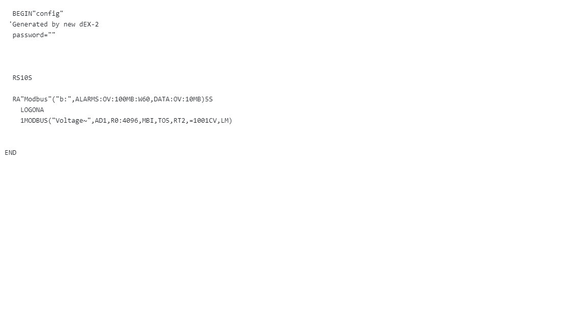 RA"Modbus"("b:",ALARMS:OV:100KB:W60,DATA:OV:1MB)5S