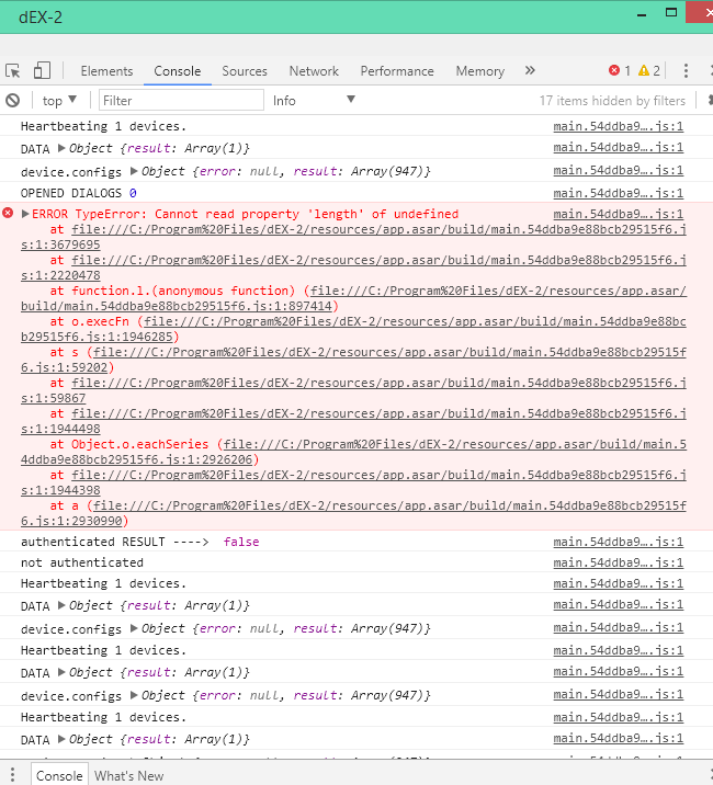 Further to above please find below for details in the dex-2 /development/console