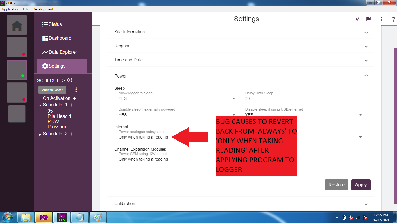 May I know what do you want to achieve with enabling analog subsystem power? Regardless the answer I will check if that was an interface issue, for temporary solution you can add a manual channel under On Logger Activation to bypass the PROFILE setting.